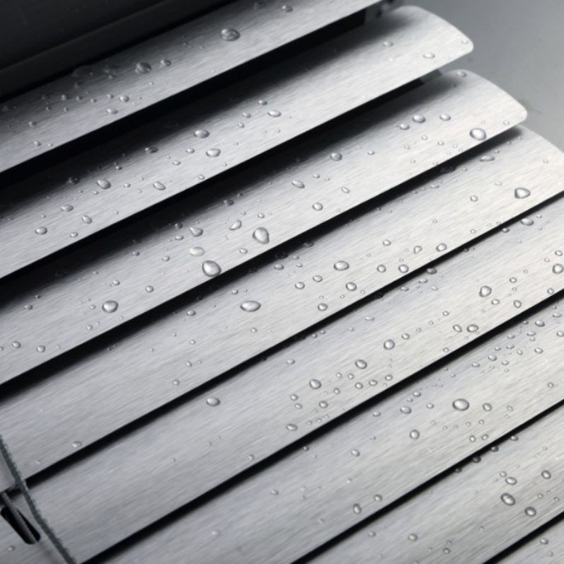 Верхние и нижние направляющие и планки, изготовленные из высокопрочного алюминиевого сплава, легче, прочнее и долговечнее, чем обычные виниловые или ПВХ-материалы. В отличие от ПВХ, алюминий очень устойчив к деформации, растрескиванию или выцветанию с течением времени, что делает его идеальным для влажных помещений, таких как кухни и ванные комнаты. Установив мотор жалюзи, жалюзи можно будет поднимать и опускать дистанционно с помощью радиоуправления.